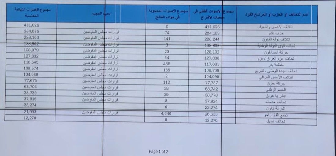 وذكرت المفوضية في مؤتمر صحفd، ان " ان نتائج الانتخابات ببغداد أظهرت تقدم ائتلاف الإعمار أولا وحزب تقدم ثانياً ودولة القانون ثالثاً وتحالف قوى الدولة رابعا وصادقون خامسا".