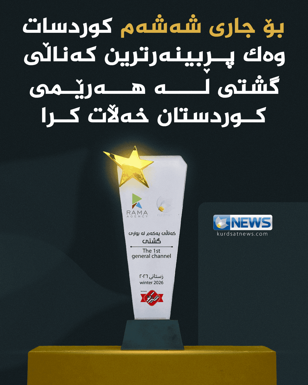 بۆ جاری شەشەم کەناڵی کوردسات وەک پڕبینەرترین کەناڵی گشتی لە هەرێمی کوردستان دیاریکراو خەڵاتی پێبەخشرا.